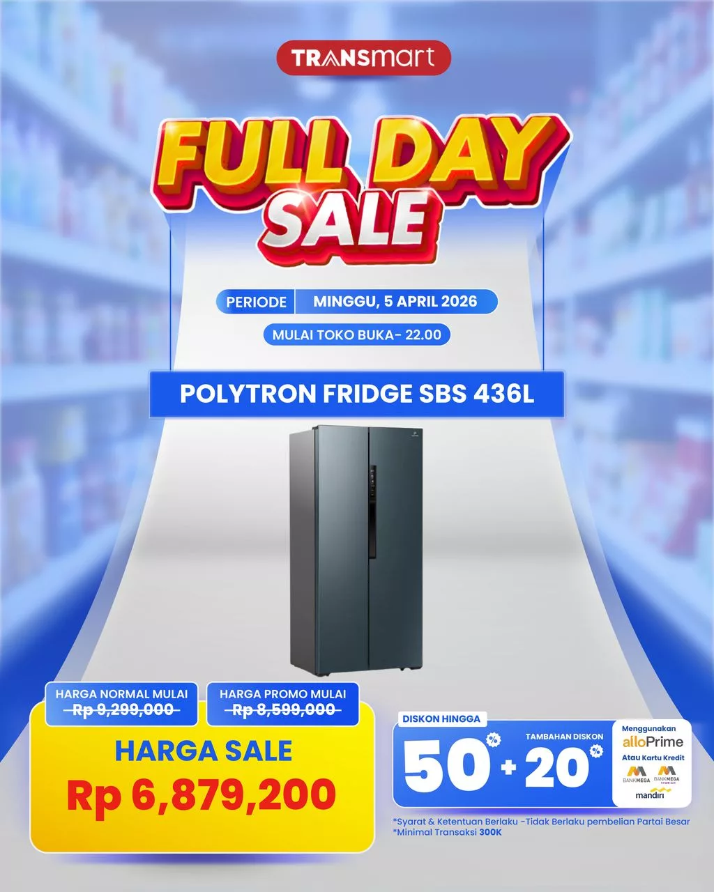 Allo Bank Diskon Elektronik Polytron Side by Side Promo Kulkas Transmart Full Day Sale